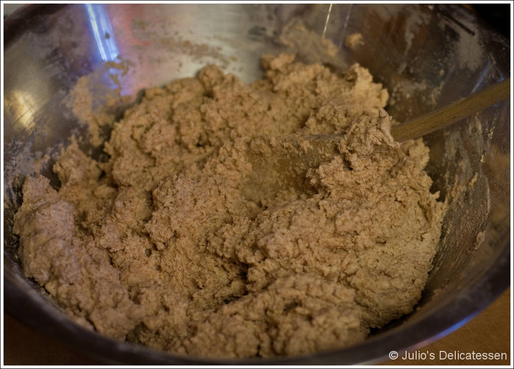Add buttermilk and mix with a spoon until the dough has a consistent texture.