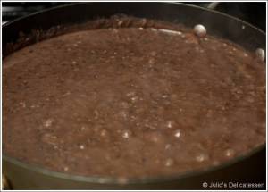 10 minutes before mealtime – continue stirring (I generally use the masher to mash and stir at the same time) occasionally. When beans reach desired consistency, turn off heat.