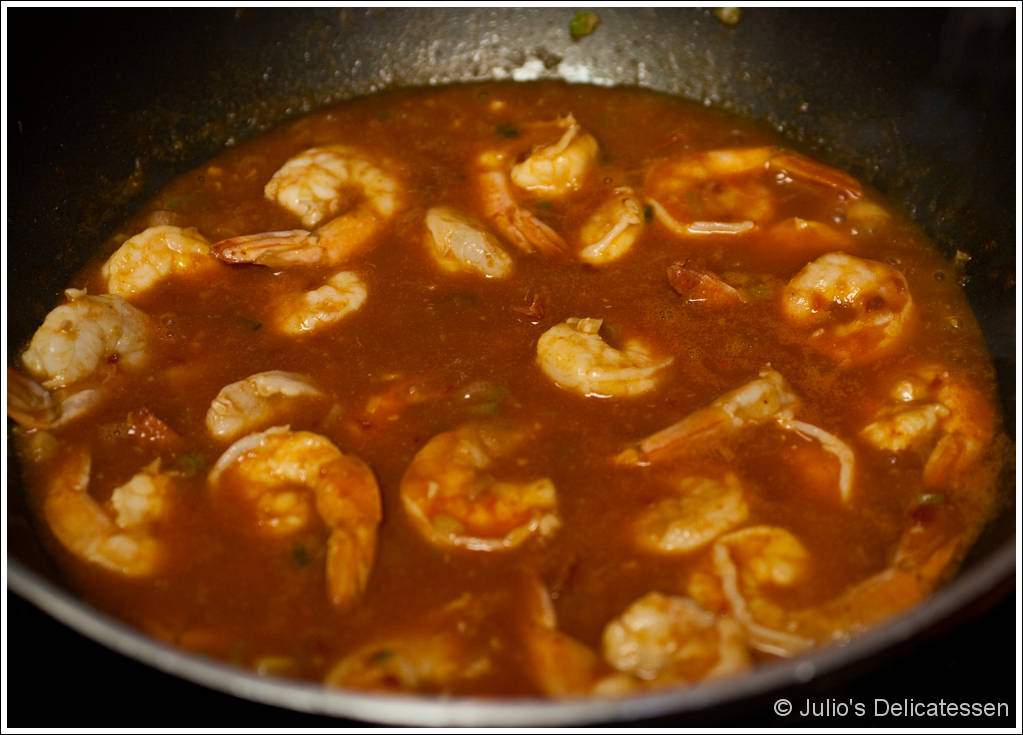I’ve done quite a bit of traveling with my job, including frequent trips to Asia. The first time I visited Malaysia was the first time I had the famous dish known as “Singaporean Chili Crab.” To make chili crab, you crack, batter, and fry some mud crabs. You then cover them in a spicy-tomato-chili-egg sauce. Using your hands is the only way to eat them and getting the sauce on your shirt is mandatory. The sauce ranges from spicy to very-very-very spicy (to me at least – a Singaporean would probably laugh at that characterization). This is a mild version. Feel free to increase the serrano chiles or chili paste.