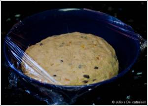 Add just enough flour to make dough barely sticky (but not so sticky you can’t work with it). Add orange pieces from the marmalade and currants and knead into dough with your hands. Return to bowl and allow to rise until doubled, about 1.5 hours.