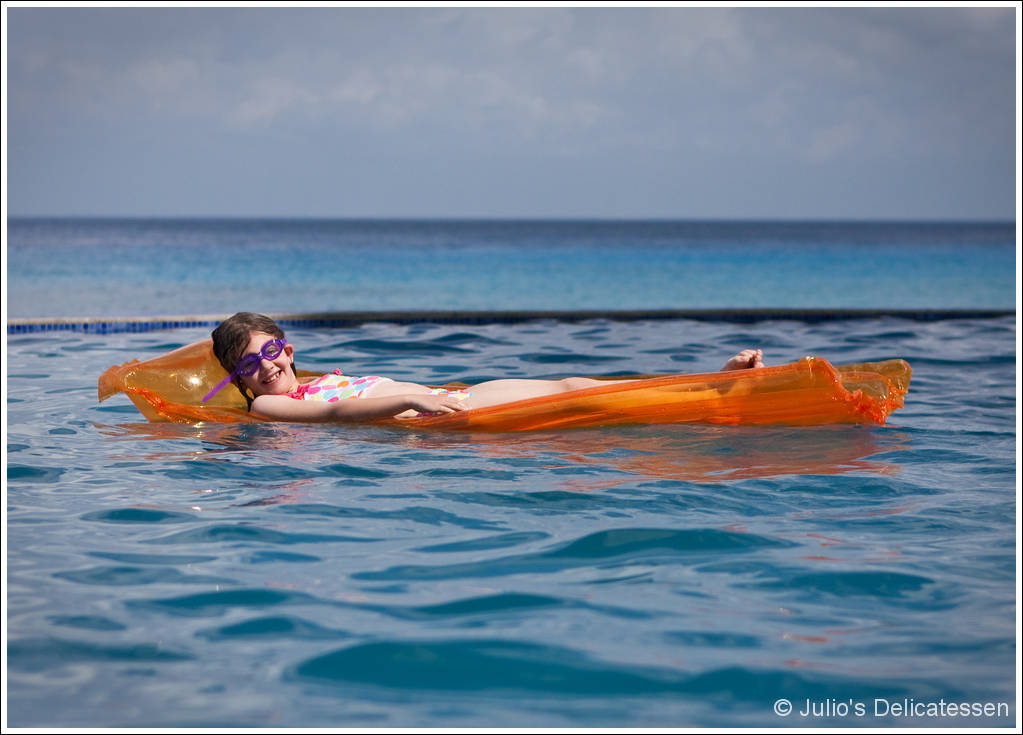 Julio’s Delicatessen has hit the road! This week, we’re on vacation in Cozumel, Mexico with some of our very best friends, the Smocks (a few photos after the jump). With five kids between us (ages 2, 3, 4, 6, and 8), it’s much easier for us to buy groceries and cook dinners ourselves than it is to get all of us to a restaurant. This means – in addition to the sun, beach, and Mexican beers – I get to take the kids to the local market and cook Rick Bayless-inspired food for great friends. What could be better!?
