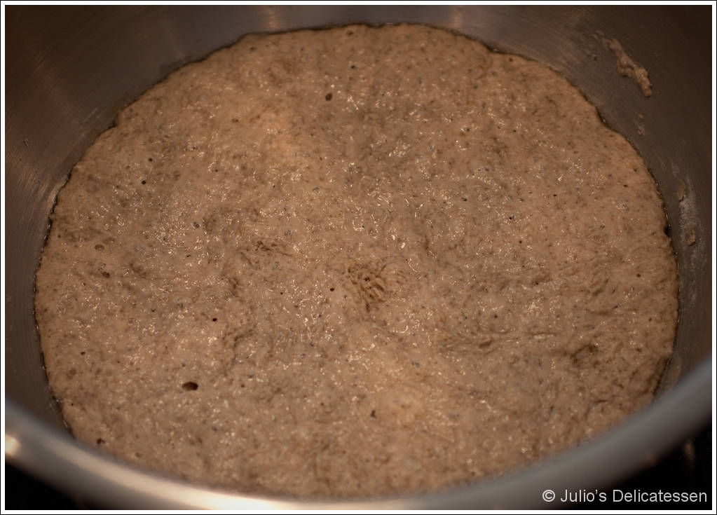4 hours before you want the bread to be done – The surface of the dough should have some bubbles visible.