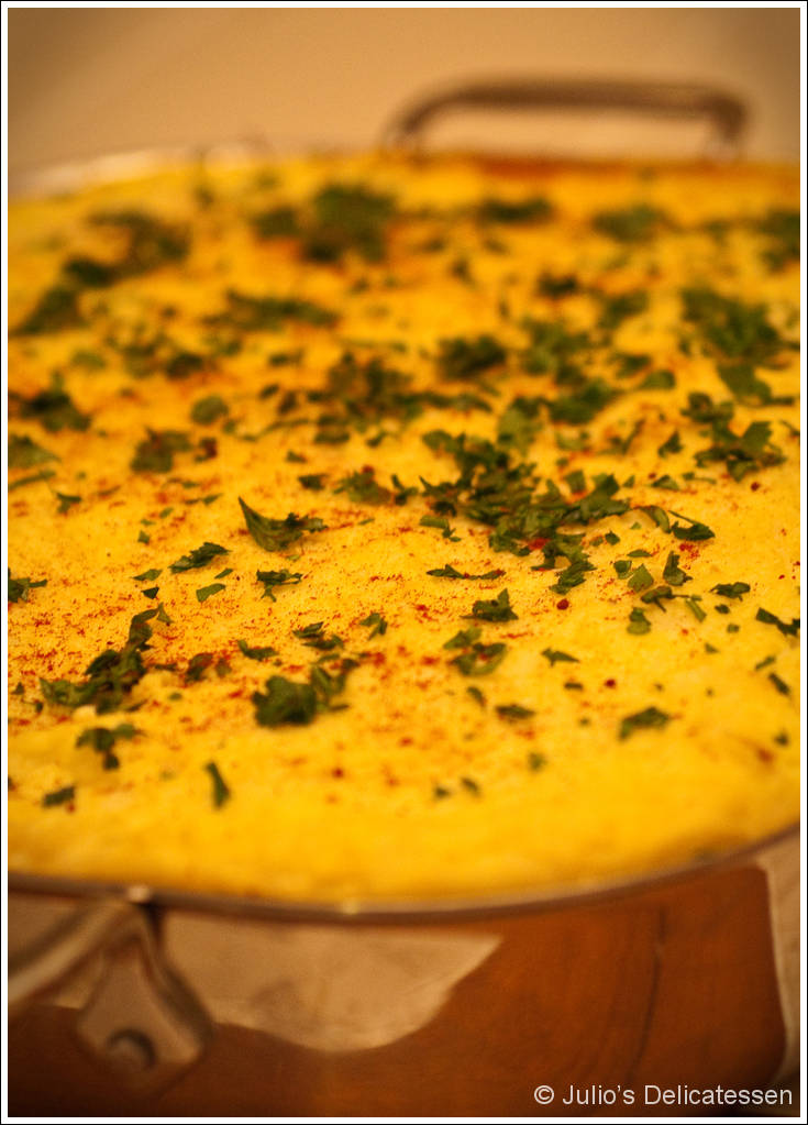 Finish the dish – preheat oven to 400 degrees. Bake, uncovered, until heated and lightly browned, 45 – 50 minutes. Sprinkle with parsley and smoked paprika and serve.