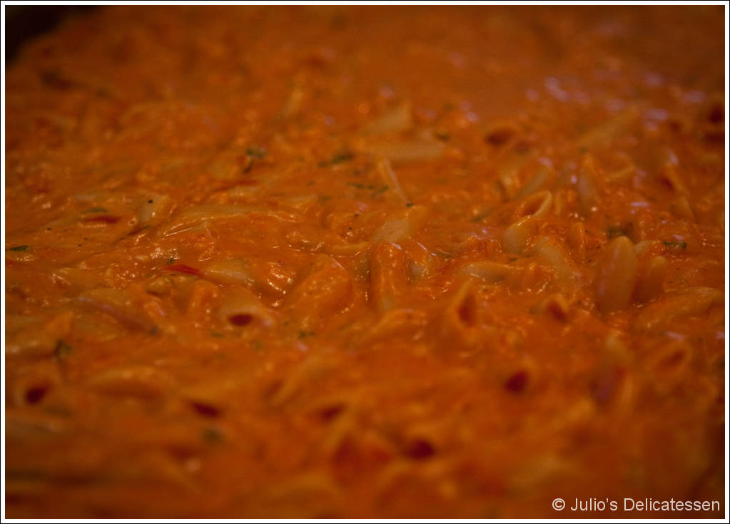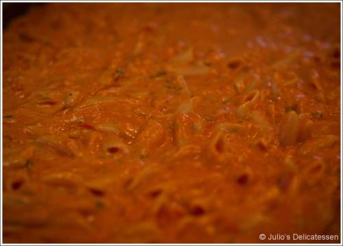 Cook for about 18 minutes, stirring often and adjusting heat to maintain a simmer. After 18 minutes, the ziti should be just about tender.