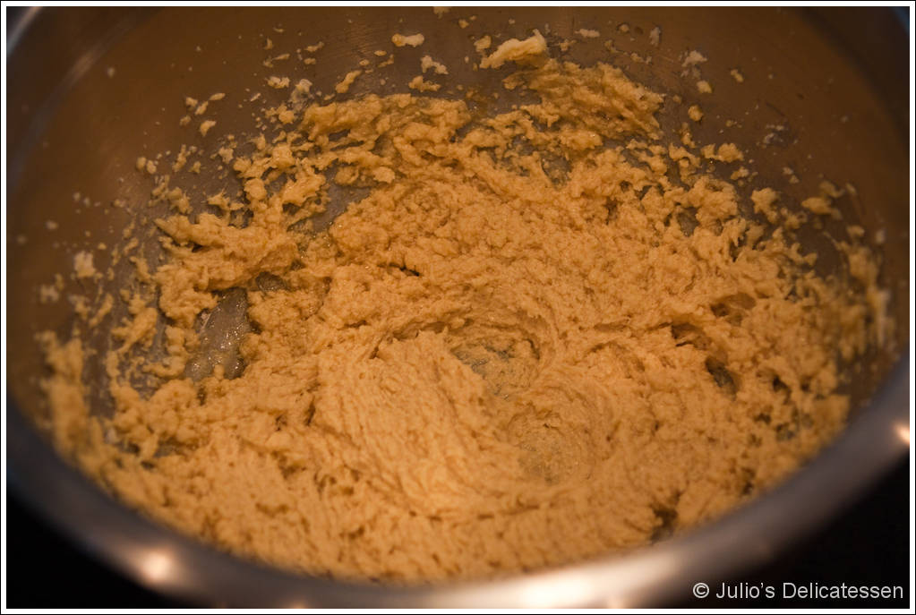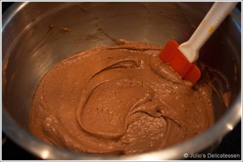Scrape down the sides of the bowl and add the egg and espresso until fully incorporated.