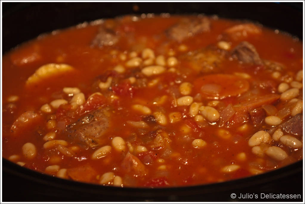 By now you may be doubting the authenticity of the recipes on this blog. Last week, I posted an Irish Stew recipe that didn’t include lamb and now I’m posting a Cassoulet recipe that doesn’t include duck. In the past, I have made this the more traditional way (using the recipe from Anthony Bourdain’s Les Halles Cookbook) with duck confit, tarbais beans, and pork belly. It was outstanding and I will likely make it again. That being said, I was specifically looking for a slow-cooker recipe to make on Christmas Eve. This was part of a perfect Christmas Eve – get the dish ready in the morning, get the kitchen clean, spend the day with the family, head to church in the evening, and come home to a delicious-smelling house and a hearty meal.