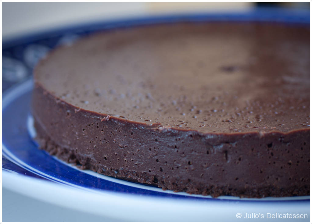 About 30 minutes before serving, remove the sides of the springform pan and flip the cake top-side-down onto a wire rack. Remove the pan bottom and the parchment paper, then invert right-side-up onto a platter.