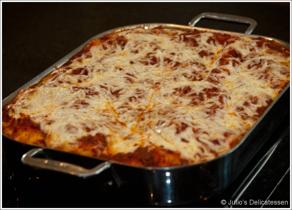 The title of this post says it all – this is about as basic a lasagna recipe as you’ll find. It’s great for a group and makes wonderful leftovers. It even freezes well.