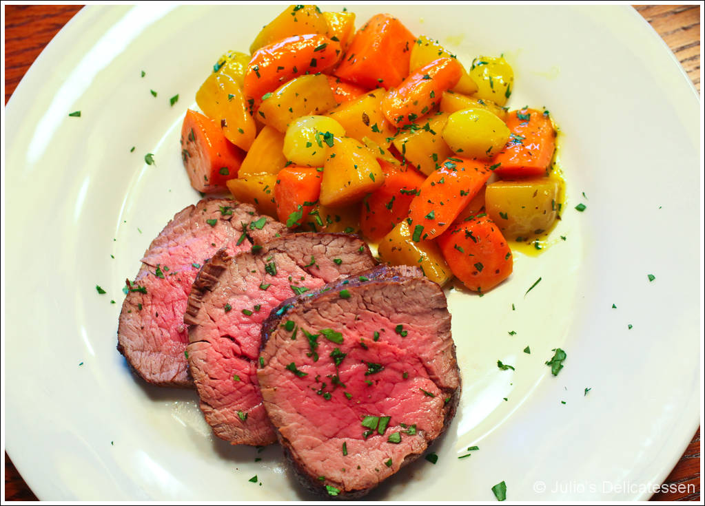 A couple of weeks ago, I had the pleasure of sharing a dinner with a couple of friends from work, Lorcan Sheehan and Bill McLennan, and Bill’s wife Diane. Diane prepared a phenomenal meal that included this side dish. Golden beets can be difficult to fin outside the summer months, so I hope to have several more opportunities to make this before the end of the season.