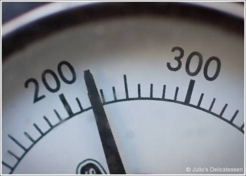 - Set your grill or smoker to somewhere between 210 and 230 degrees, ideally indirect heat.